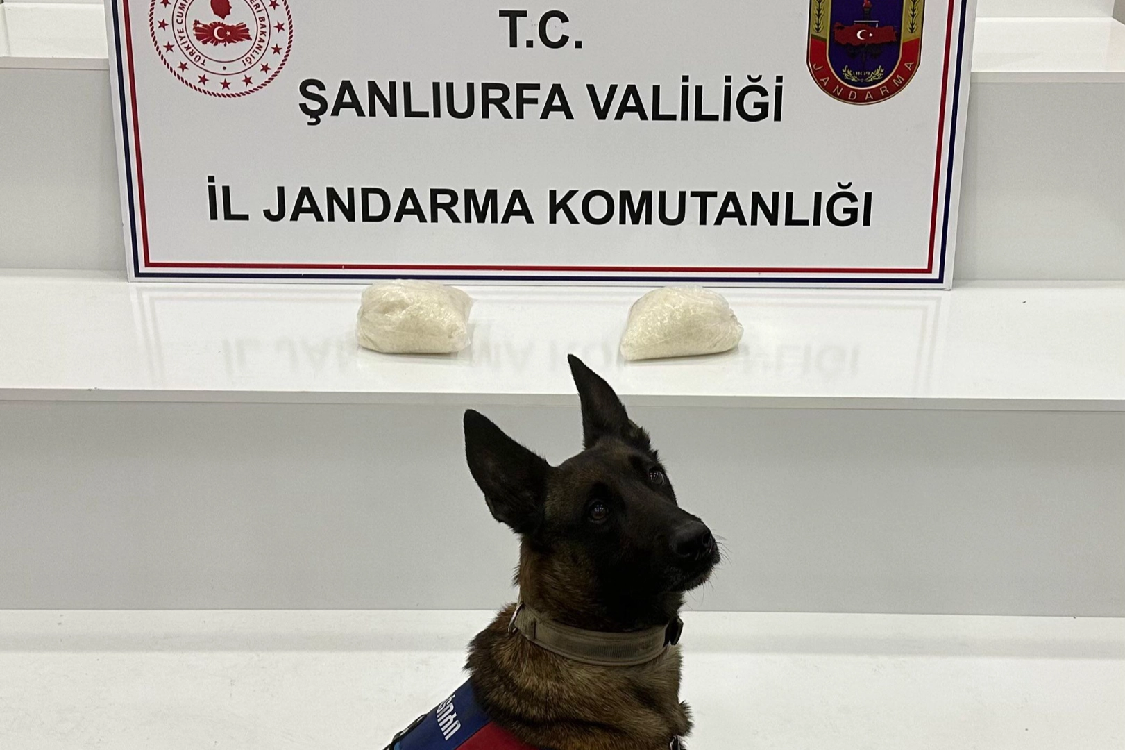 Viranşehir İlçe Jandarma Komutanlığı İstihbarat Şube Müdürlüğü ile Narkotik Şube Müdürlüğüne bağlı ekiplerin hassas burunlu köpeklerle yaptığı başarılı operasyonda 2 kilogram sentetik uyuşturucu madde ele geçirildi.