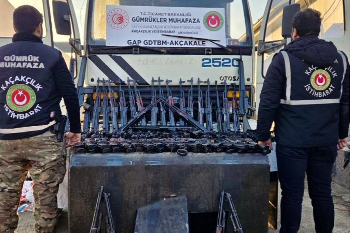 Şanlıurfa'nın Akçakale ilçesinde Suriye'den yurda giren bir kamyonun yakıt deposunda 51 uzun namlulu silah ile 41 şarjör ele geçirildi.