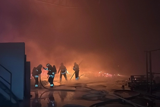 Hasar oluşan fabrikada, soğutma çalışmaları sürüyor.