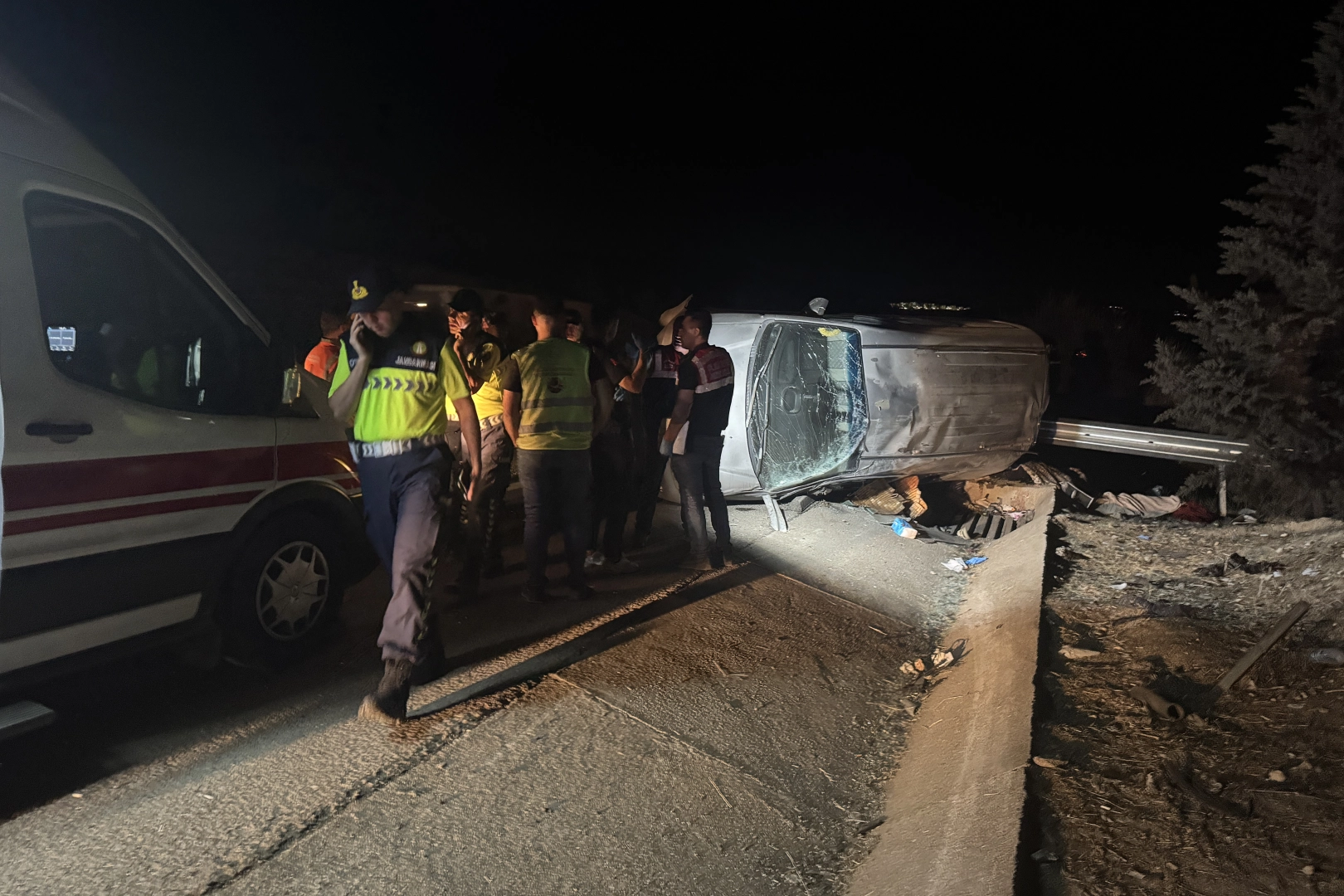 Gaziantep'te lastiği patlayan kamyonetin devrilmesi sonucu yabancı uyruklu 2 kişi hayatını kaybetti, 8 kişi yaralandı.