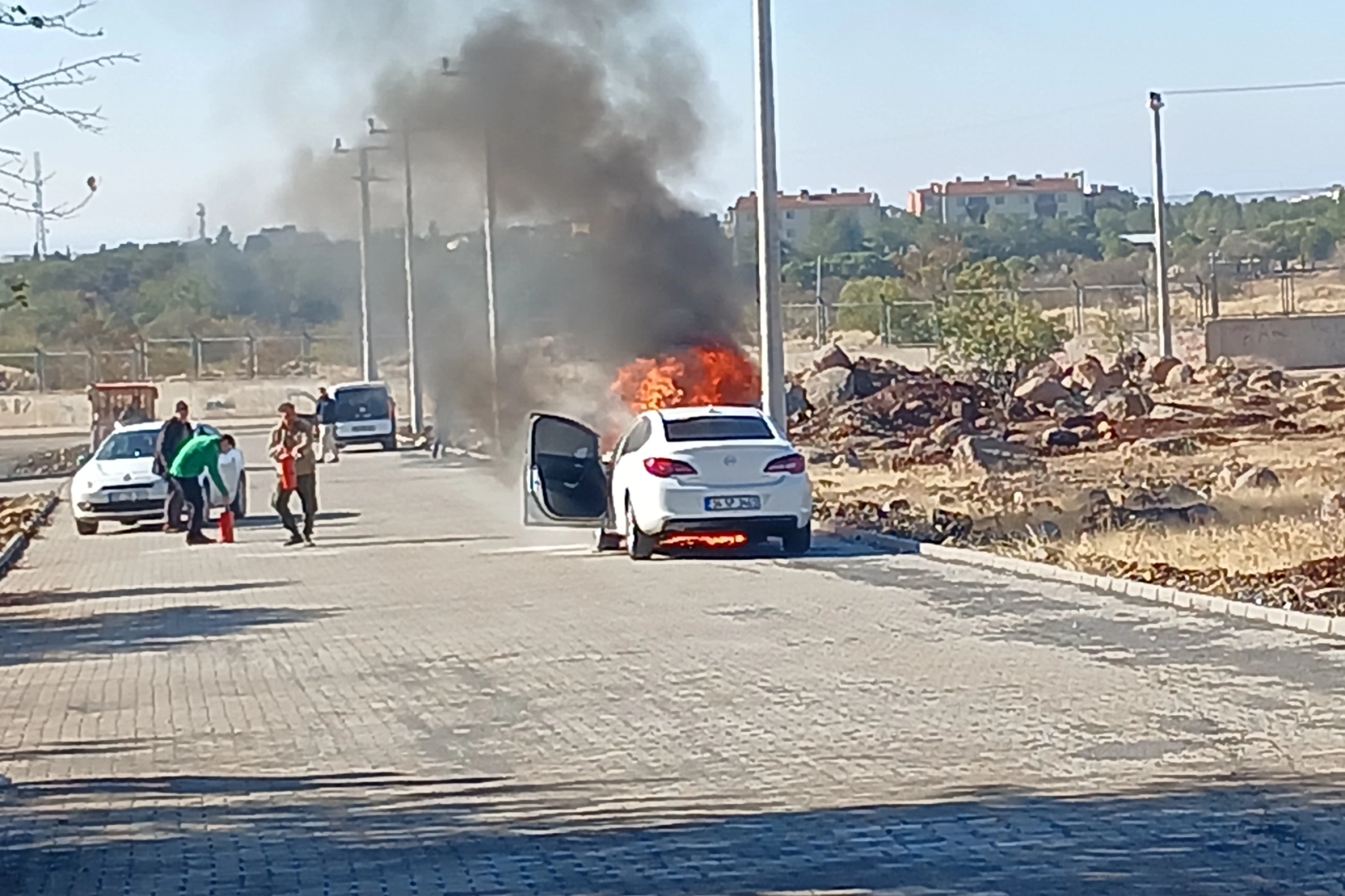 Şanlıurfa'nın Siverek ilçesinde seyir halindeyken alev alan otomobil, kullanılamaz hale geldi.
