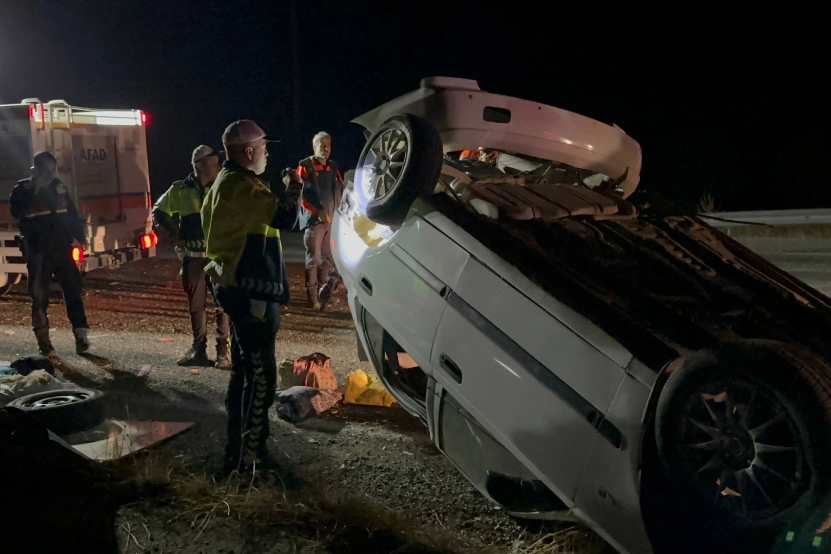 Kazada araç sürücüsü ve araçtaki 3 kişi sıkıştığı yerden kurtarılarak sağlık ekiplerine teslim edildi.