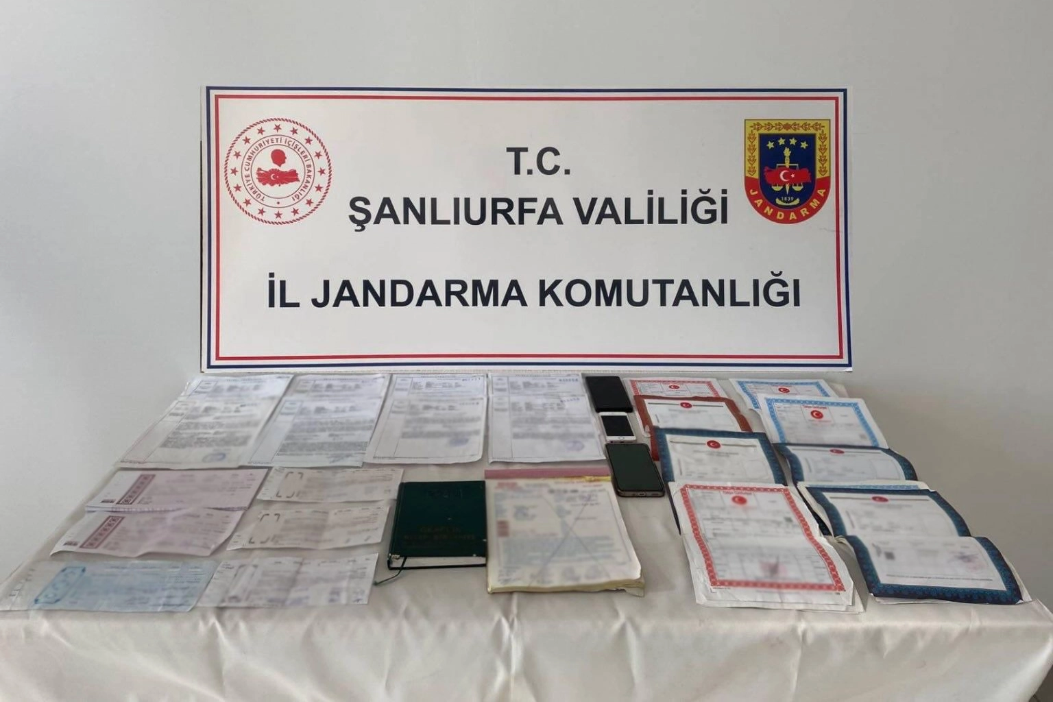 Adreslerde yapılan aramalarda, alacak defteri, 2 otomobil satış sözleşme defteri, 5 yazılı senet, 18 araç satış sözleşmesi, 19 tapu senedi, 47 boş senet ele geçirildi.