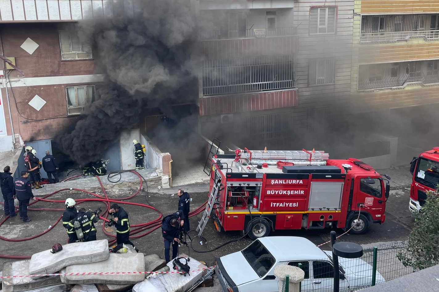 İçeride bulunan vatandaşları tahliye eden itfaiye ekiplerinin yangına müdahalesi sürüyor.
