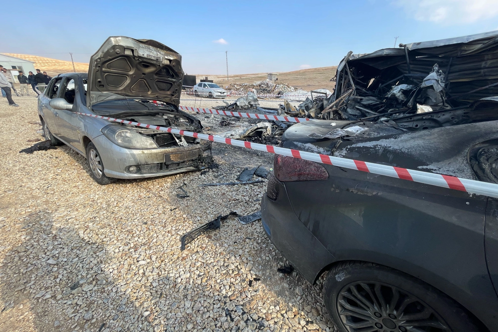 Şanlıurfa'nın Haliliye ilçesinde bir inşaatın şantiye alanında çıkan yangında 4 araçta hasar meydana geldi.
