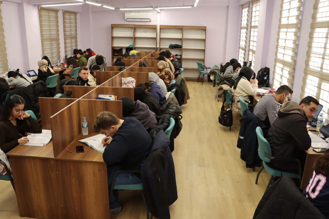 Sömestr tatilini verimli geçirmek isteyen öğrenciler, sessiz ve düzenli çalışma ortamı sunan okuma evleri ile Merkez Kütüphane’yi tercih ederek sınavlara hazırlanıyor.