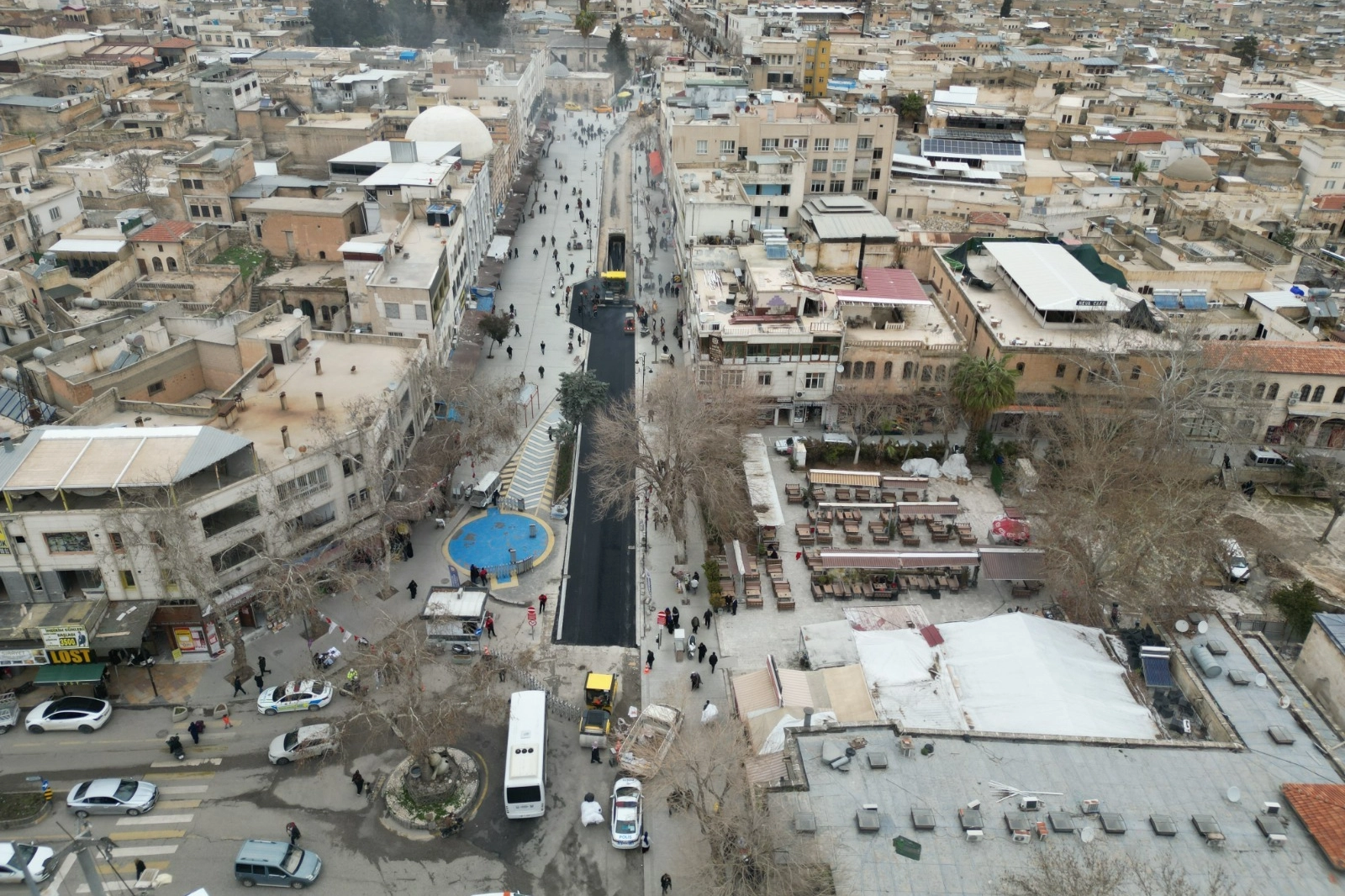 Şanlıurfa Büyükşehir Belediyesi tarafından hayata geçirilen Divanyolu Yayalaştırma Projesi kapsamında sıcak asfalt serimine başlandı.