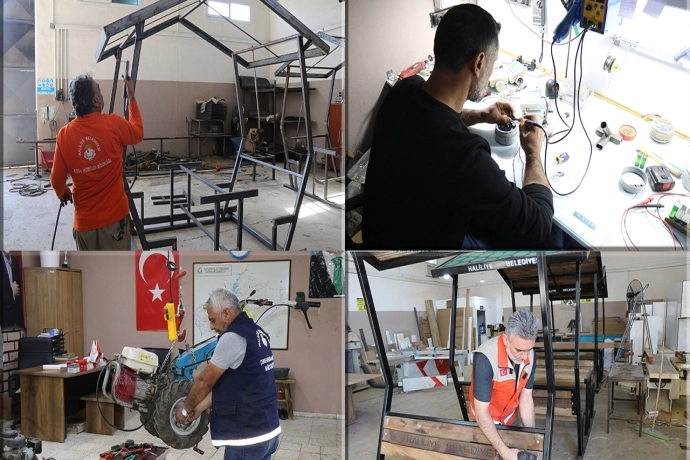 Belediye bünyesindeki Metal-İş, Boyama ve Ahşap Atölyelerinde görev yapan ekipler, park ve yeşil alanlarda kullanılan donatı elemanlarını kendi imkanlarıyla üretiyor. Kaynak ve boyama işlemleri tamamlanan ürünler monte edilerek kısa sürede vatandaşların hizmetine sunuluyor. Bu sayede hem zaman hem de maliyet açısından önemli tasarruf sağlanıyor.