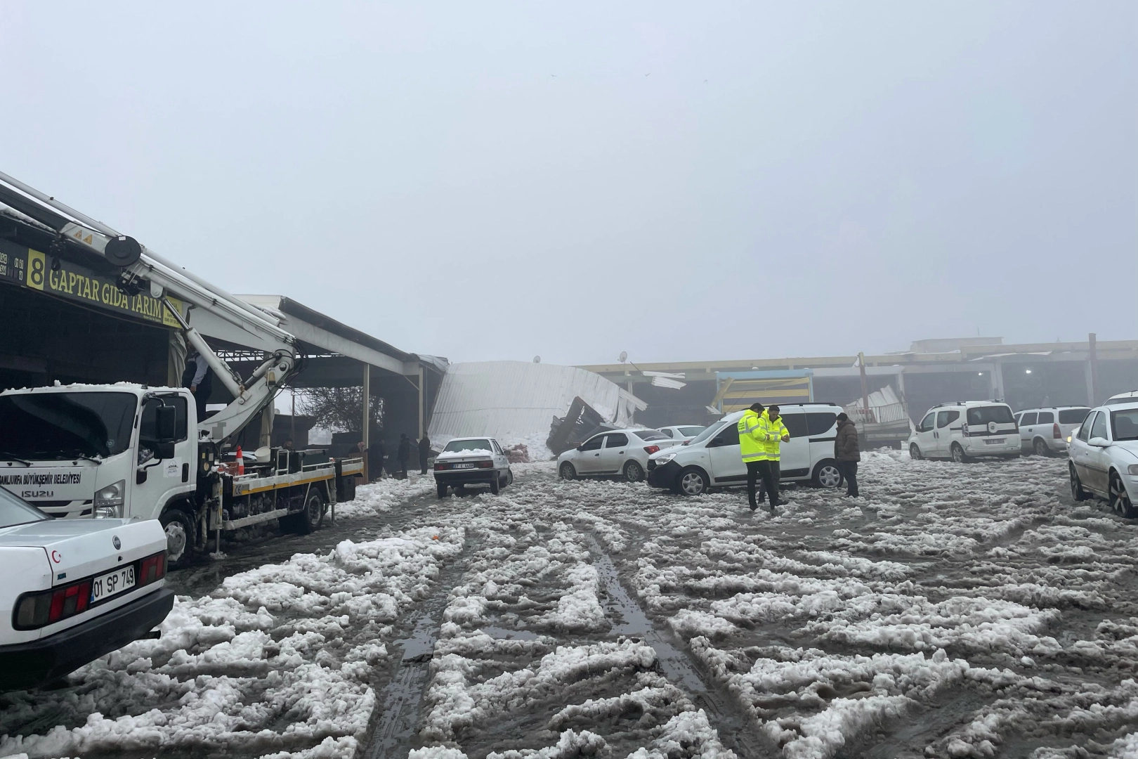İki gün boyunca etkisini sürdüren yoğun kar yağışı ve tipi nedeniyle Şanlıurfa Sebze ve Meyve Hali'nde karın ağırlığını taşıyamayan bazı iş yerlerinin çatıları çöktü.
