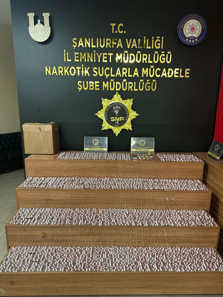 Şanlıurfa'da uyuşturucu operasyonunda 5 bin 54 sentetik uyuşturucu hap ele geçirildi, 3 şüpheli gözaltına alındı.