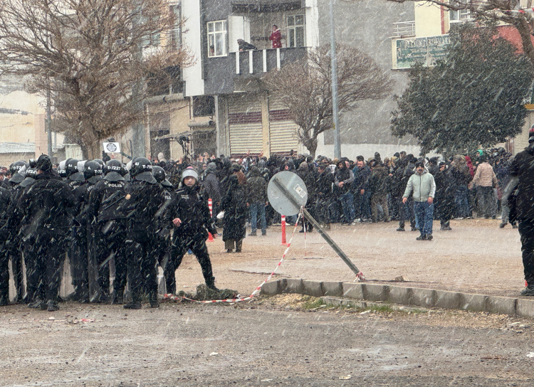 Öte yandan Aydınlar Mahallesi Doğantürk Sokak'taki DEM Parti İlçe Başkanlığı önünde toplanan bazı kişilerin polis ekiplerine havai fişek atması üzerine güvenlik güçleri burada da müdahalede bulundu.