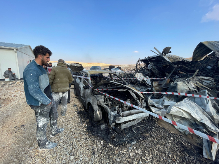 Şanlıurfa'da inşaat şantiyesinde çıkan yangında 4 araçta hasar oluştu.