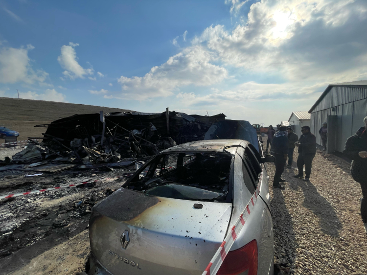Şanlıurfa'nın Haliliye ilçesinde bir inşaatın şantiye alanında çıkan yangında 4 araçta hasar meydana geldi.