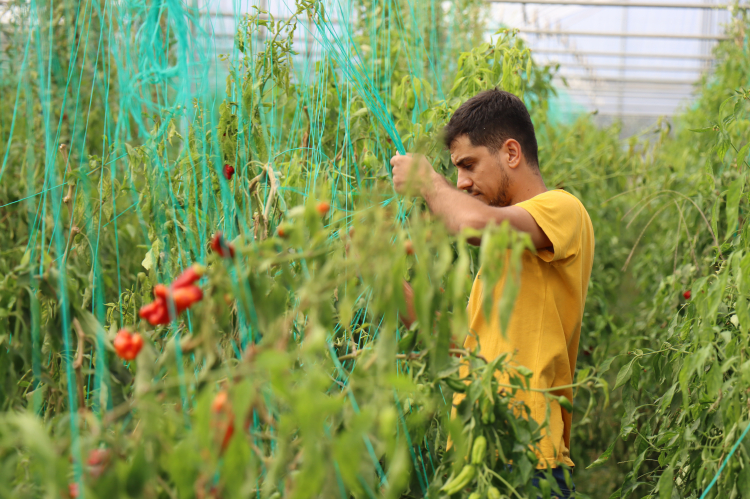 Şanlıurfa'nın Haliliye ilçesinde yaşayan 29 yaşındaki Kamil Güneş, üniversiteden mezun olduktan sonra hayallerinin peşinden giderek devlet destekli kurduğu serada yılda iki ürün yetiştiriyor.