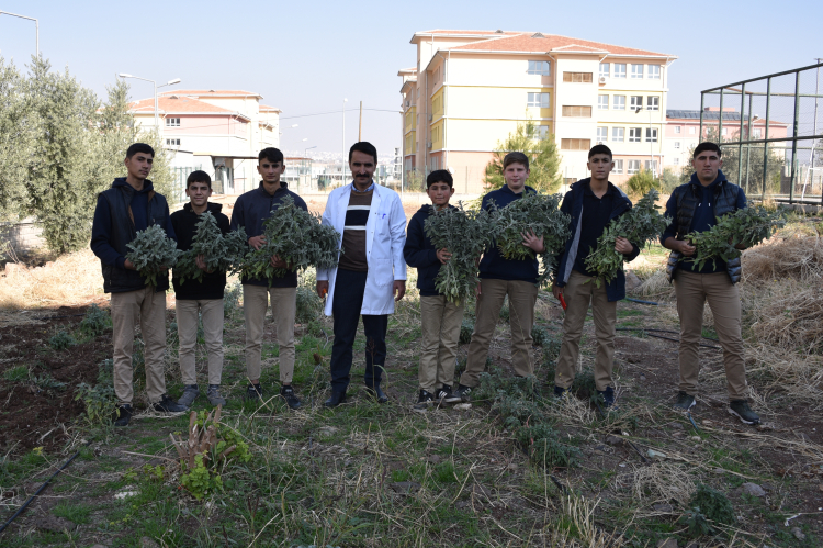 Şanlıurfa'nın Siverek ilçesinde lise öğrencileri, okul bahçesinde oluşturulan uygulama alanında bir yandan tarımı öğrenirken diğer yandan ise bölgenin geleneksel ürünlerine alternatif olarak tıbbi ve aromatik bitki yetiştiriyor.