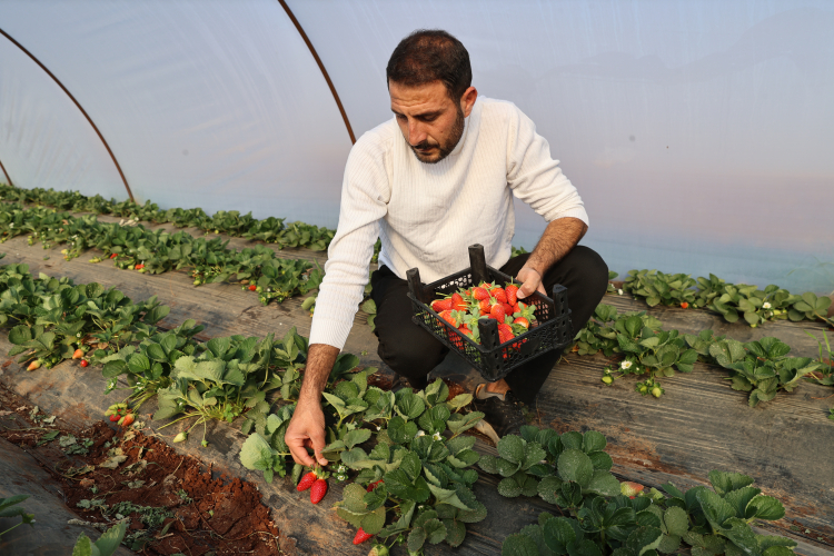 Antalya'da öğrendiği çilek yetiştiriciliğini Şanlıurfa'nın Viranşehir ilçesindeki köyünde uygulayan çiftçi, geçen yıl ilk denemesinde elde ettiği başarının ardından bu yıl üretim alanını 60 dekara çıkardı.