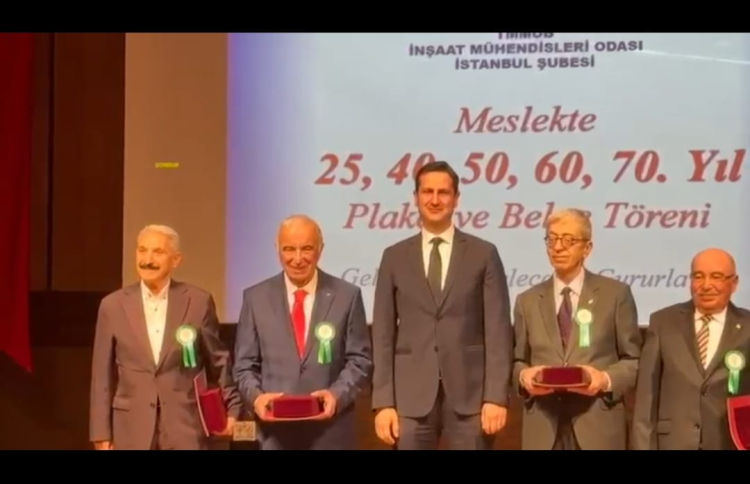 Türkiye Mimarlar ve Mühendisler Odası İstanbul Şube Başkanlığının “Gelenekten Geleceğe Gururla” adlı etkinliğinde meslekte 25, 40, 50, 60 ve 70 yılını doldurmuş meslek büyüklerine teşekkür plaketi ve onur belgeleri taktim edildi.