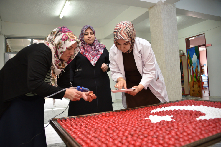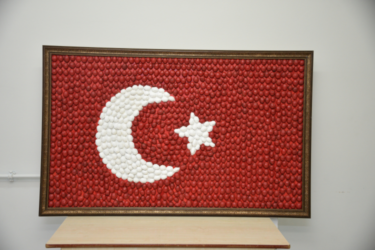 Şanlıurfa'da Cumhuriyet Bayramı anısına ceviz kabuklarıyla Türk bayrağı yaptılar.