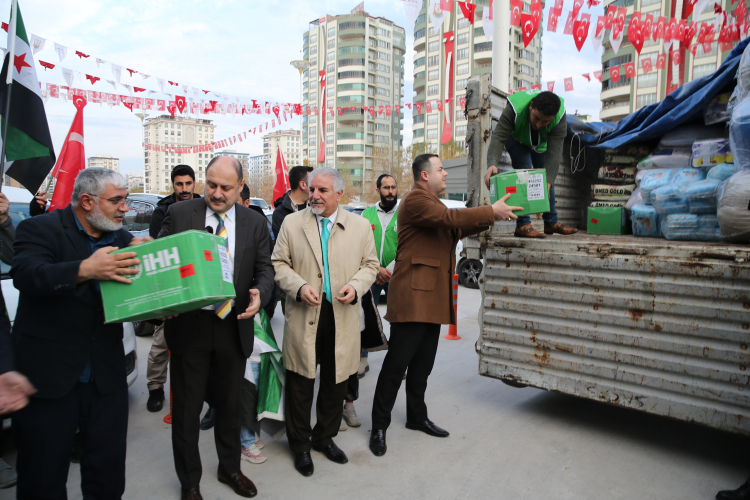 İnsan Hak ve Hürriyetleri (İHH) İnsani Yardım Vakfı Şanlıurfa Şubesi koordinasyonunda Suriye'de 61 yıllık Baas rejiminin devrilmesi sonrası Halep, Hama, Humus ve Şam kırsalındaki ihtiyaç sahiplerine ulaştırılmak üzere gıda ve giyim içerikli insani yardım malzemesi toplandı.