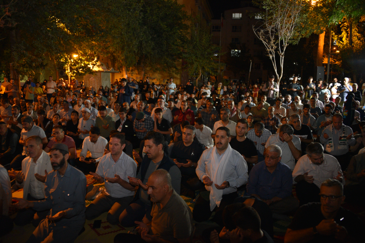 Gazze Dayanışma Platformu'nca Aksa Parkı'nda düzenlenen etkinlikte, seccadesiyle gelen vatandaşlar yatsı namazını kıldı.