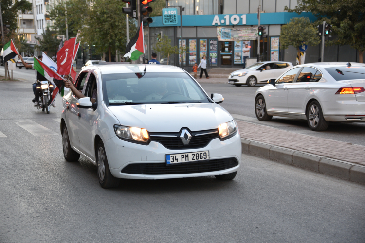 Şanlıurfa'nın Siverek ilçesinde düzenlenen araç konvoyuyla, İsrail'in Gazze'ye insani yardım ulaştırmak üzere yola çıkan Küresel Sumud Filosu'na düzenlediği saldırılara tepki gösterildi.